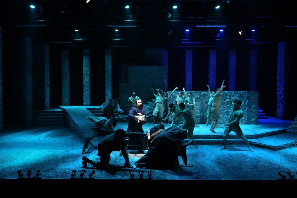 Nonetheless, for many of the student cast members, who are close to finishing their training, there is quite a way to go in terms of vocal work, physical precision and characterisation. This includes developing a stronger awareness of what the heart of the play is, how to embody characters authentically, and where focus should lie – that is, how to understand your role as a component part of a larger organism. Altogether its a production with many compelling parts, but it’s disorganised and not yet whole.
