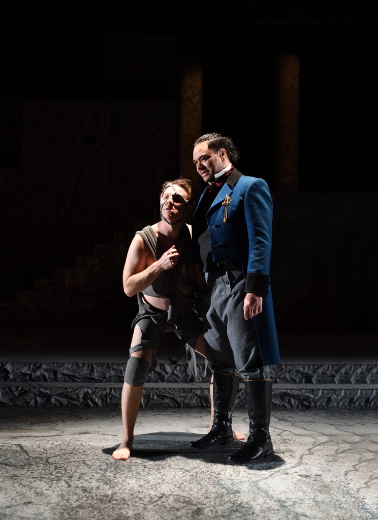 Yet, there is little space, literally and figuratively, to explore the immensity of this relationship, including in blocking and the relationship between spatial elements. There is a flatness where complicated stage business and overtly caricatural, even camp characterisation in some supporting roles pulls focus significantly from the (in)human relationships at the play’s core. Even the evocative electronic score, at times, feels like it dictates character beats, instead of responding to them. I don’t believe in the world of the play, although perhaps this will settle as the production continues and finds a more organic sense of spontaneity.