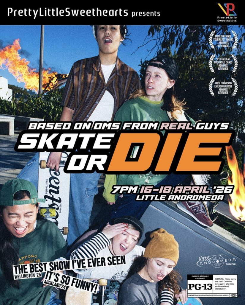 Erin Harrrington reviews Skate or Die, written by Millie Hanford, directed by Grace von Huben, produced by Pretty Little Sweethearts, at Little Andromeda, Thursday 16 April 2026.
